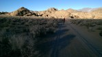 With the extra mobility offered by the car, we extended the “scope” of our trip, and first headed West past the Death Valley to the eastern side of the Sierras, to Lone Pine, a small town just bellow Mt. Whitney. We didn’t know that, but it turns out this is some sort of iconic place in the cinema industry. Basically half the Westerns you may have seen or heard about were shot here. The motel we used had hosted zillion of movie stars as they were proudly showing, the local cafe had breakfast menu items such as “Gregory Peck scramble”, etc. More importantly for us, the views on the Sierras are really magnificent and the whole landscape and scenery around the “Alabama Hills” – a (huge) forest of crazy looking boulders and rocks where all those movies were shot – are completely “unearthy” so we were really happy to enjoy the great weather and discover these places from our bikes. Given the fact that we took more photos than pedal strikes, the mileage was rather low, but the whole experience was well worthed the effort of us bringing bikes over there.